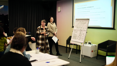 Другий день завершився інтенсивною практикою. Учасники працювали в командах над кейсами, шукали релевантні грантові програми, формували ідеї та одразу перетворювали їх на грантові заявки. Кожна група презентувала свій проєкт і отримала практичний зворотний зв’язок від експертів.