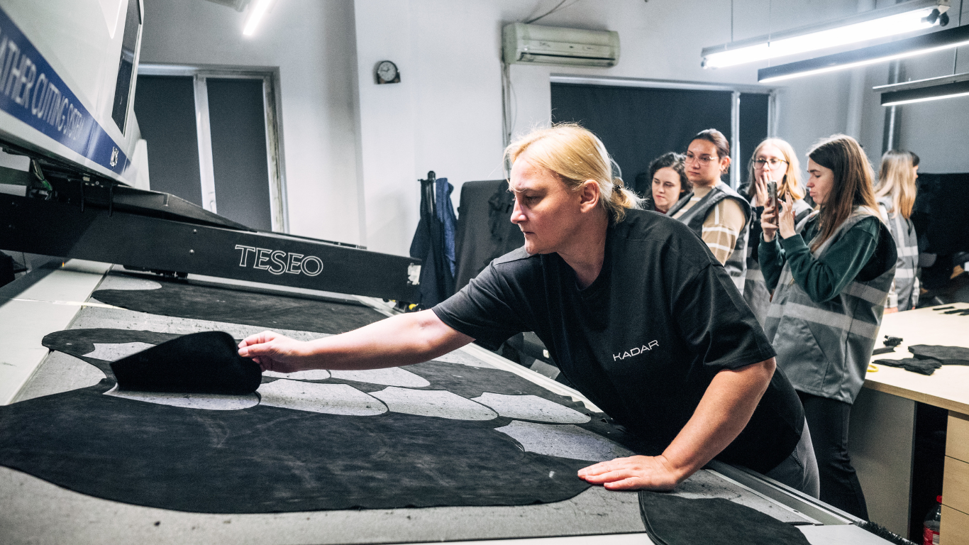Компанія KADAR має власну студію моделювання, де народжуються нові колекції. Дизайнерка Тетяна, яка керує процесом, каже, що кожен сезон — це дослідження трендів, робота на виставках, підбір нових кольорів та матеріалів.
