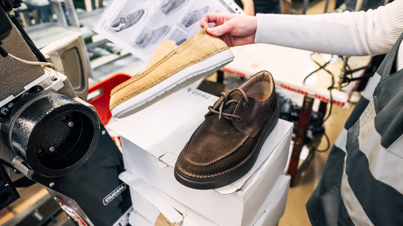 Попри автоматизацію, значна частина роботи залишається ручною: частина моделей кроїться різаками, цех обробки обробляє деталі, швачки зшивають їх, а майстри на монтажній дільниці збирають готову пару. Кожна пара проходить перевірку якості — і лише після цього взуття надходить на виставки або до клієнтів.